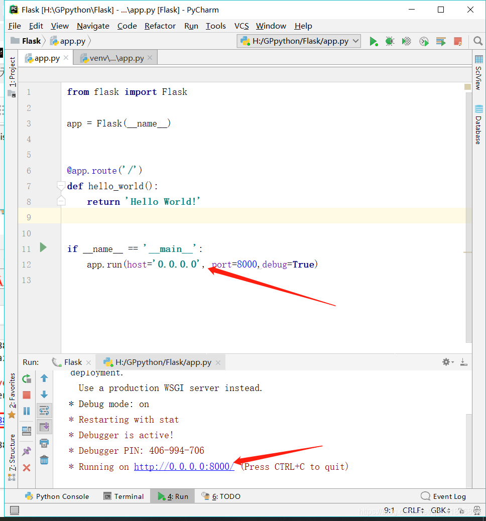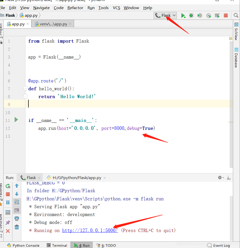 但是在你运行的时候依旧是下图所示,右上角以flask的logo运行的。