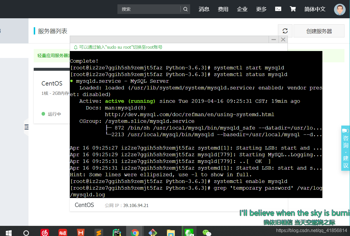 grep 'temporary password' /var/log/mysqld.log
