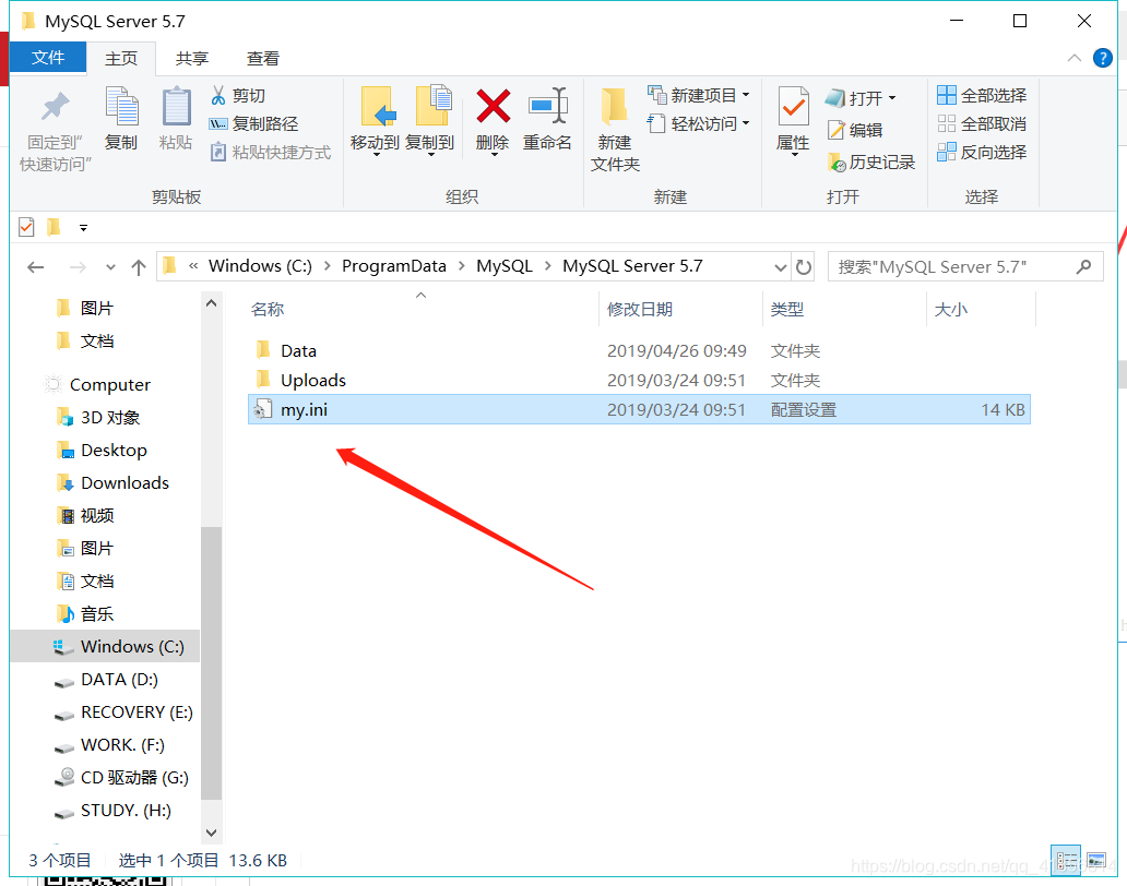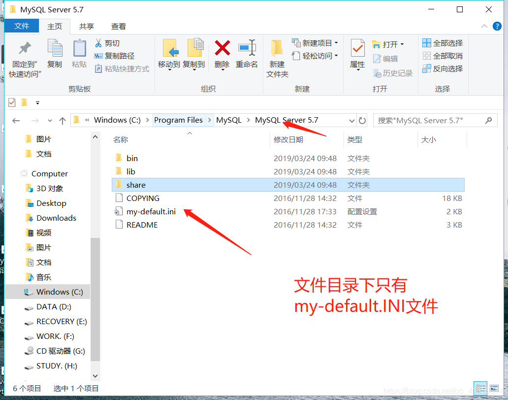 安装mysql后在安装目录下只有my-default.ini没有my.ini文件 。