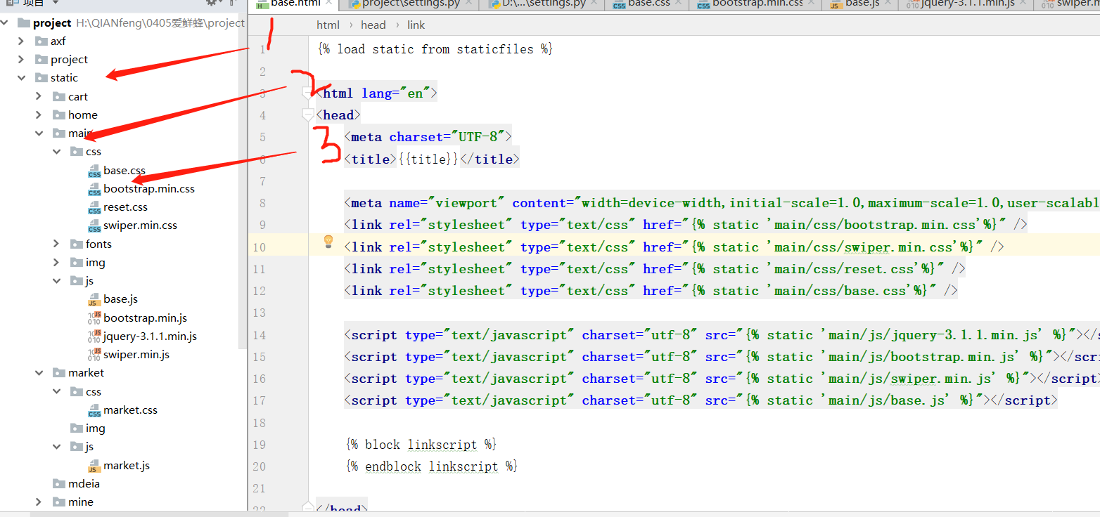 django部署方式比较特别,采用静态文件路径:STATICFILES_DIRS的部署方式,之前你写的相对路径,绝对路径因为缺少静态文件路径而全部失效