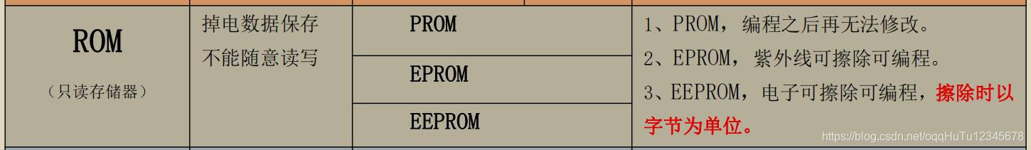 PROM:(P指的programmable)可编程ROM,根据用户需求,来写入内容,但是只能写一次,就不能再改变了。