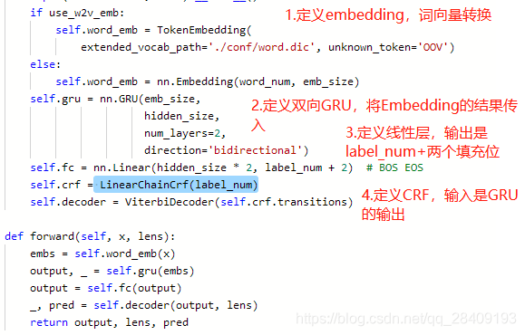 此处选择的模型是Bi-GRU+CRF,其中GRU的输出是CRF的输入。