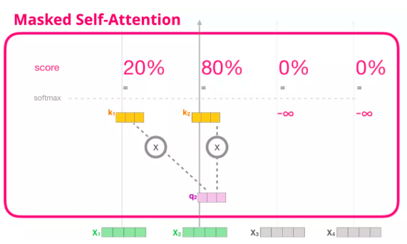 解码器和编码器相比略有不同,在解码器中,只允许self Attention的输出序列中较早的位置,通过在self Attention计算的softmax步骤之前屏蔽未来位置(将它们设置为-inf)来完成的。