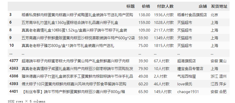 df[df['标题'].str.contains(r'[嘉兴]{2}') & ~(df['发货地址'].str.contains(r'[嘉兴]{2}'))]