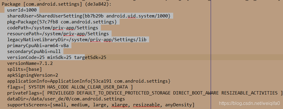 看到primaryCpuAbi=arm64-v8a,说明我们的settings应用是64位的。
