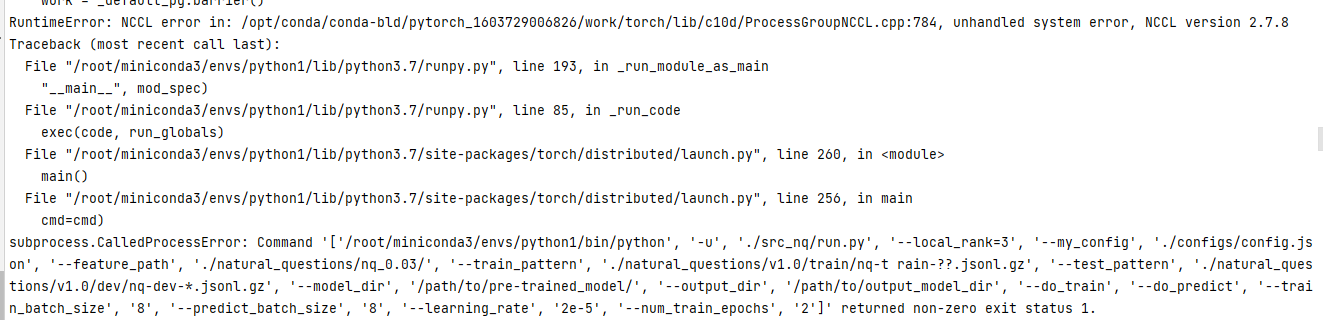 CUDA_VISIBLE_DEVICES=0,1,2,3,4,5 python -m torch.distributed.launch --nproc_per_node=6 src_nq/create_examples.py --vocab_file ./bert-base-uncased-vocab.txt \--input_pattern "./natural_questions/v1.0/train/nq-train-*.jsonl.gz" \--output_dir ./natural_questions/nq_0.03/\--do_lower_case \--num_threads 24 --include_unknowns 0.03 --max_seq_length 512 --doc_stride 128