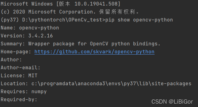 首先我们要找到那个分类器所在的路径,我们可以在Cmd中直接输入【若是虚拟环境的话,则需要切换到对于虚拟环境中,再去查找对应的opencv版本与位置信息】