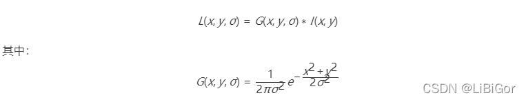 一个图像的尺度空间L(x,y,σ),定义为原始图像I(x,y)与一个可变尺度的2维高斯函数G(x,y,σ)卷积运算 ,即: