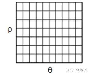 直线都可以使用(ρ,θ) 表示,首先创建一个2D数组,我们叫做累加器,初始化所有值为0,行表示ρ ,列表示θ 。