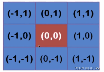 假定中心点的坐标是(0,0),那么距离它最近的8个点的坐标如下: