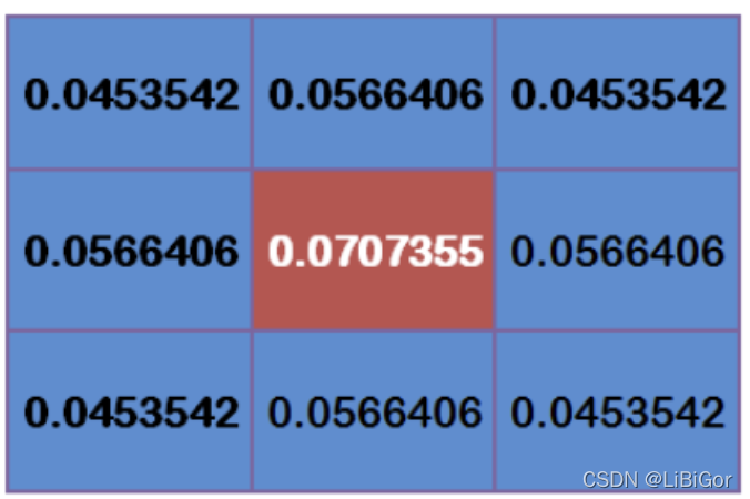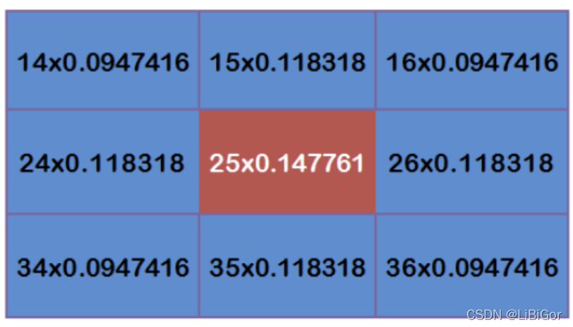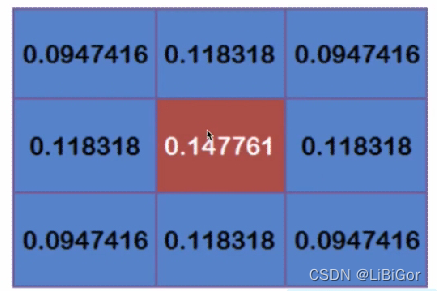 将这9个值加起来,就是中心点的高斯模糊的值。