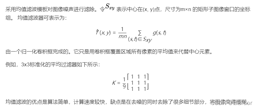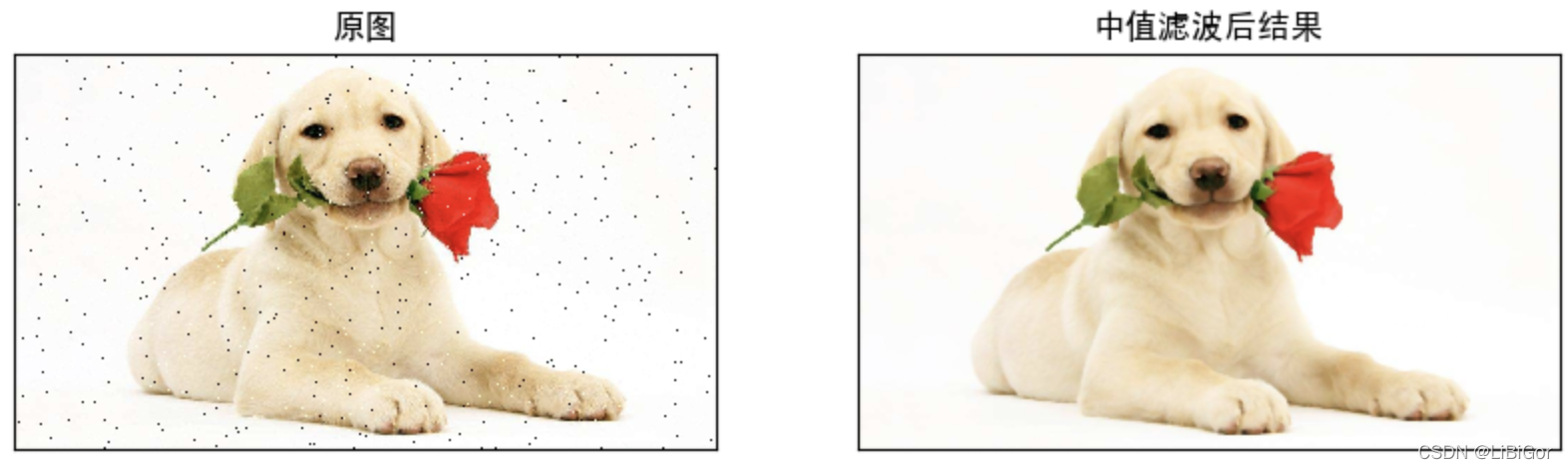 中值滤波对椒盐噪声(salt-and-pepper noise)来说尤其有用,因为它不依赖于邻域内那些与典型值差别很大的值。
