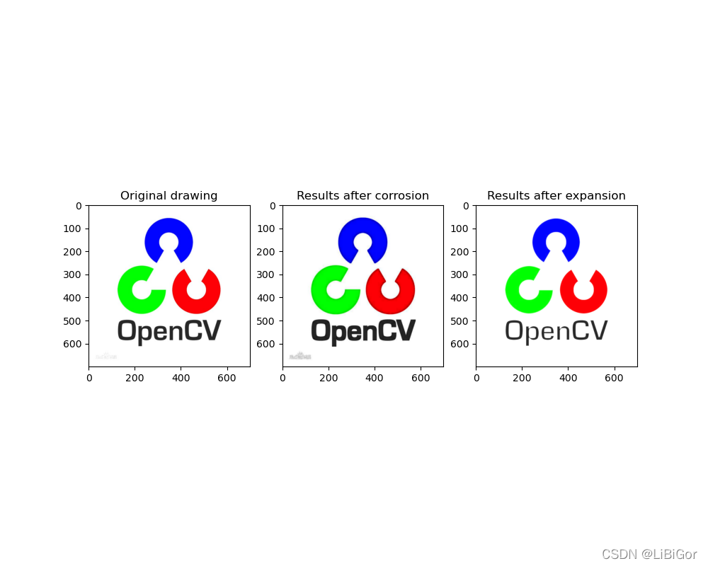 腐蚀是原图中的高亮区域被蚕食,效果图拥有比原图更小的高亮区域。