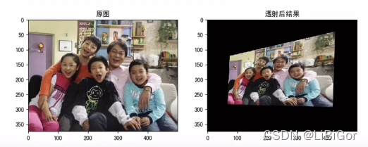 通过函数cv.getPerspectiveTransform()找到变换矩阵,将cv.warpPerspective()进行投射变换