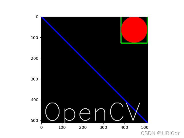 cv.line(img,(0,0),(511,511),(255,0,0),5)