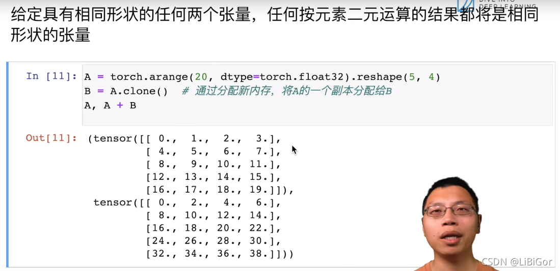 B = A.clone() # 通过分配新内存,将A的一个副本分配给B