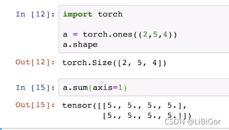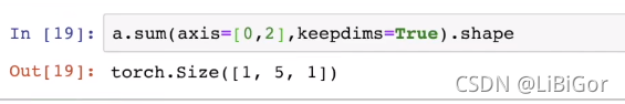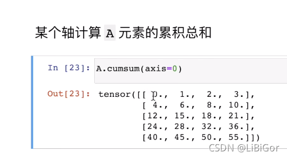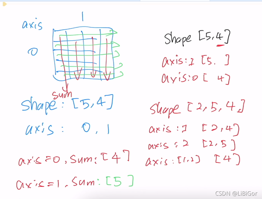 默认情况下,调用求和函数会沿所有的轴降低张量的维度,使它变为一个标量。