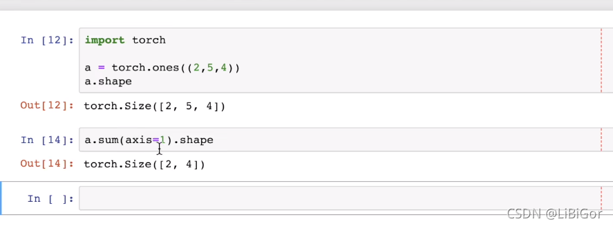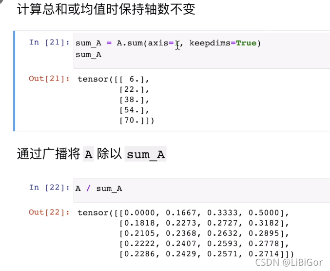 我们还可以指定张量沿哪一个轴来通过求和降低维度。 由于输入矩阵沿0轴降维以生成输出向量,因此输入的轴0的维数在输出形状中丢失。