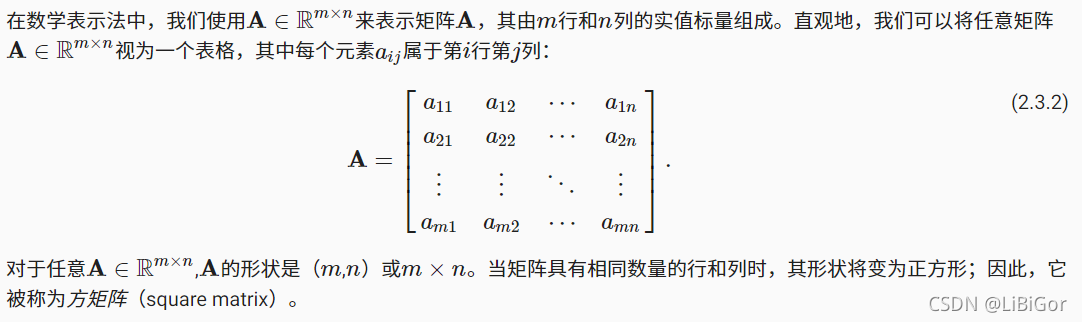 #当调用函数来实例化张量时,我们可以通过指定两个分量 m 和 n 来创建一个形状为 m×n 的矩阵。