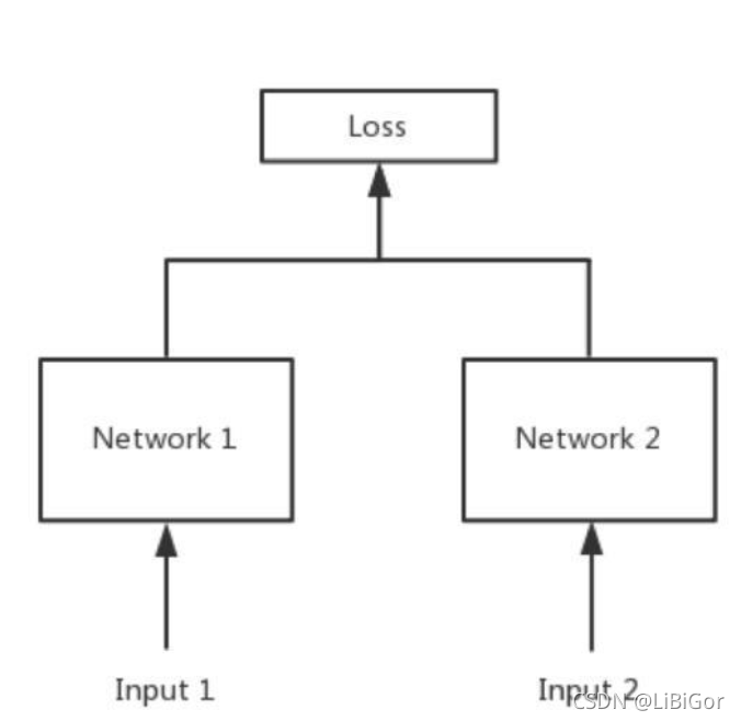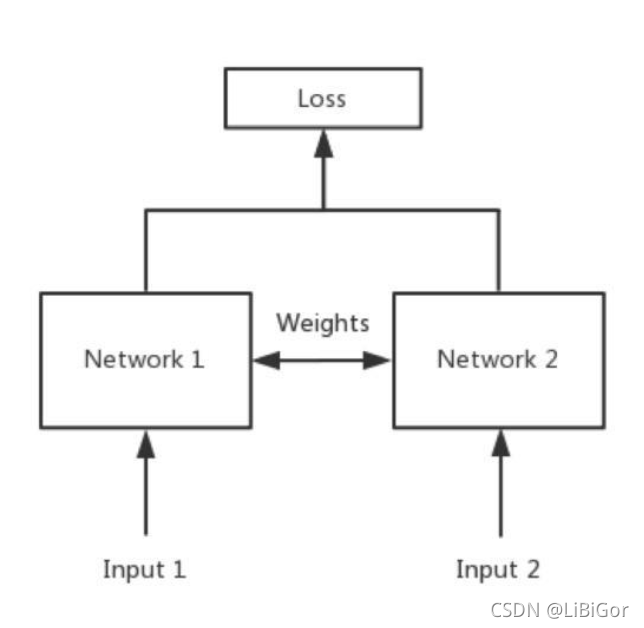 Siamese网络衡量两个输入的相似程度,输出是一个[0,1]的浮点数,表示二者的相似程度。孪生神经网络有两个输入(Input1 and Input2),将两个输入feed进入两个神经网络(Network1 and Network2),这两个神经网络分别将输入映射到新的空间,形成输入在新的空间中的表示。通过Loss的计算,评价两个输入的相似度。