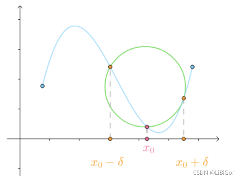 当δ 趋近于0时,我们可以的到曲线在x_0x0处的密切圆,也就是曲线在该点的圆近似: