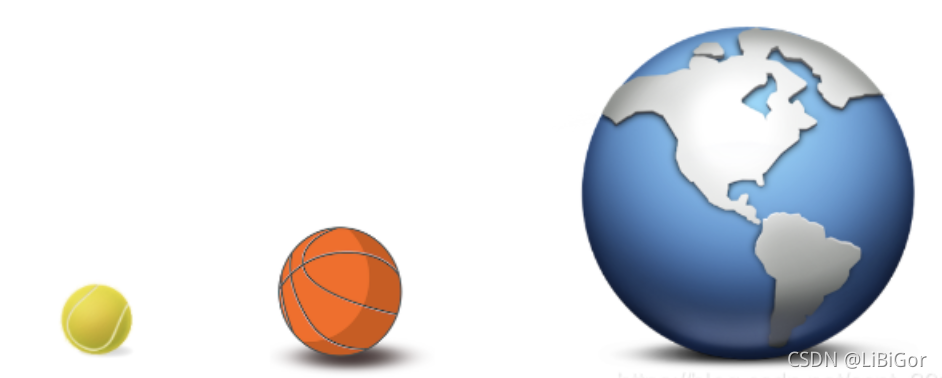 下面有三个球体,网球、篮球、地球,半径越小的越容易看出是圆的,所以随着半径的增加,圆的程度就越来越弱了。