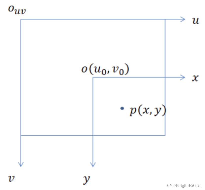 像素坐标系和图像坐标系都在成像平面上,只是各自的原点和度量单位不一样。图像坐标系的原点为相机光轴与成像平面的交点,通常情况下是成像平面的中点。图像坐标系的单位是mm,属于物理单位,而像素坐标系的原点在图像的左上角,单位是pixel,也就是我们说的几行几列。如下图所示: