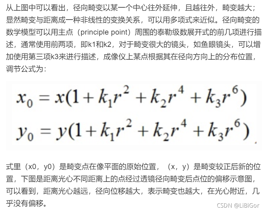 我们在相机坐标系到图像坐标系变换时谈到透视投影。相机拍照时通过透镜把实物投影到像平面上,但是透镜由于制造精度以及组装工艺的偏差会引入畸变,导致原始图像的失真。因此我们需要考虑成像畸变的问题。透镜的畸变主要分为径向畸变和切向畸变两类。