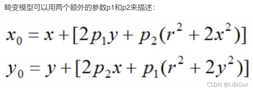 径向畸变和切向畸变模型中一共有5个畸变参数:k1、k2、p1、p2、k3,得到这五个参数,就可以进行图像的去畸变。这些都属于相机的内参。