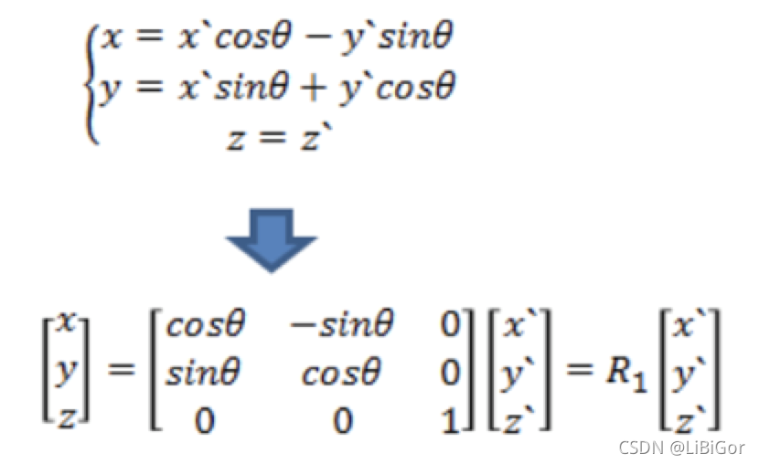 下面我们看下旋转矩阵的计算,现在假设坐标系沿着z轴旋转,如下图所示: