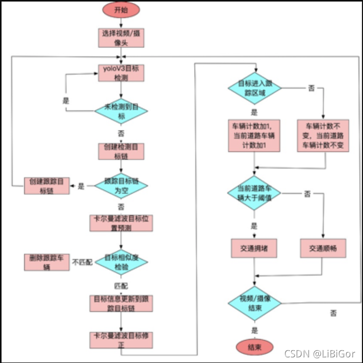 -  利用虚拟线圈的思想实现车辆目标的计数,完成车流量的统计。 项目流程如下图所示: