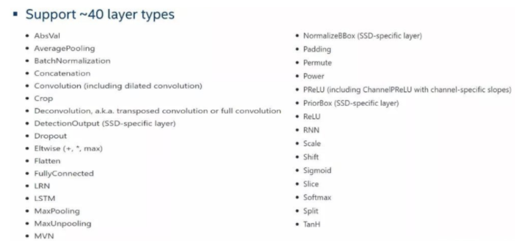DNN模块支持多种类型网络层,基本涵盖常见的网络运算需求。