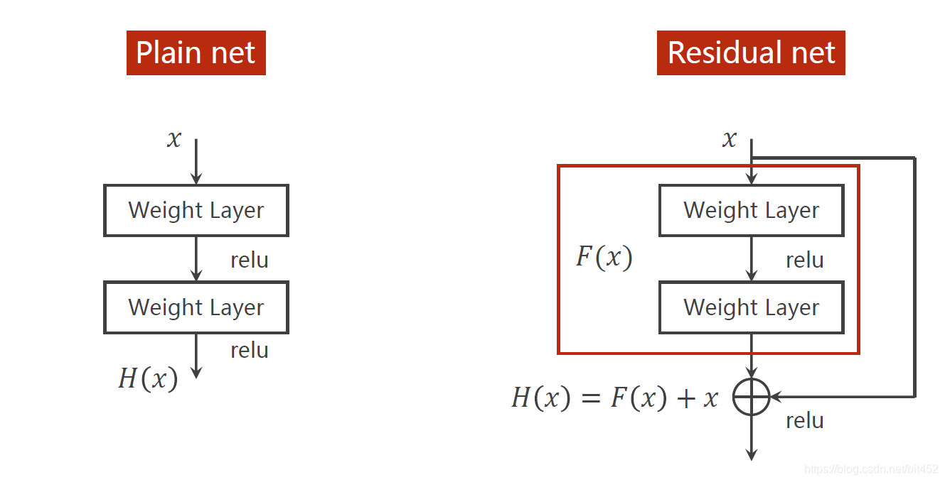 2、跳连接,H(x) = F(x) + x,张量维度必须一样,加完后再激活。不要做pooling,张量的维度会发生变化。