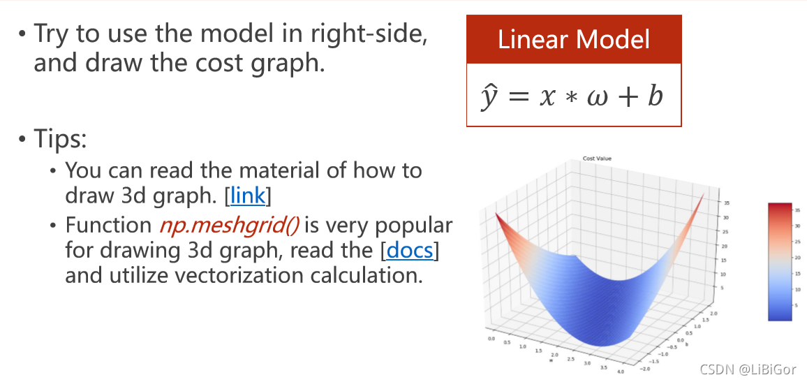 作业题目:实现线性模型(y=wx+b)并输出loss的3D图像。