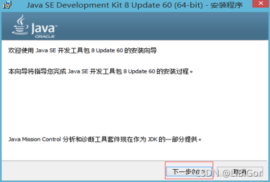 欢迎使用Java SE开发工具包8 Update 60的安装向导界面,点击“下一步”