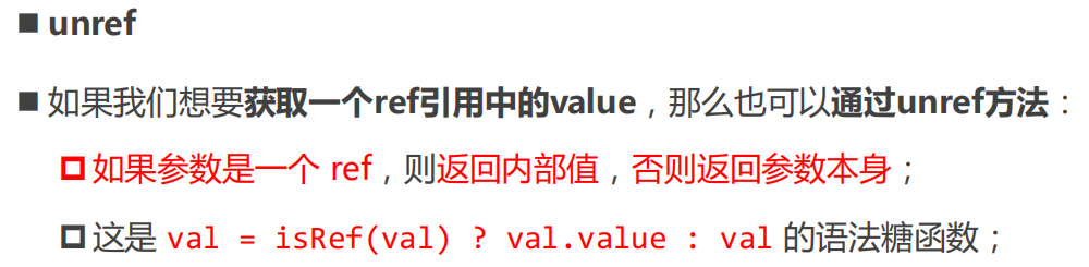- 它内部的值是在ref的 value 属性中被维护的;