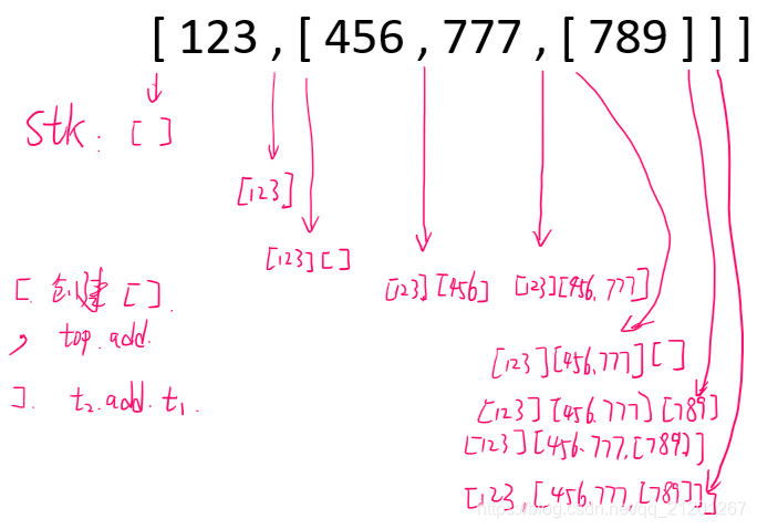 给定 s = "[123,[456,[789]]]",