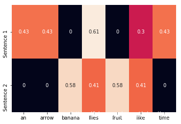 yticklabels= ['Sentence 1', 'Sentence 2'])