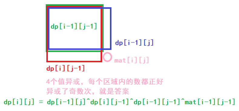 矩阵中坐标 (a, b) 的 值 可由对所有满足 0 <= i <= a < m 且 0 <= j <= b < n 的元素 matrix[i][j](下标从 0 开始计数)执行异或运算得到。