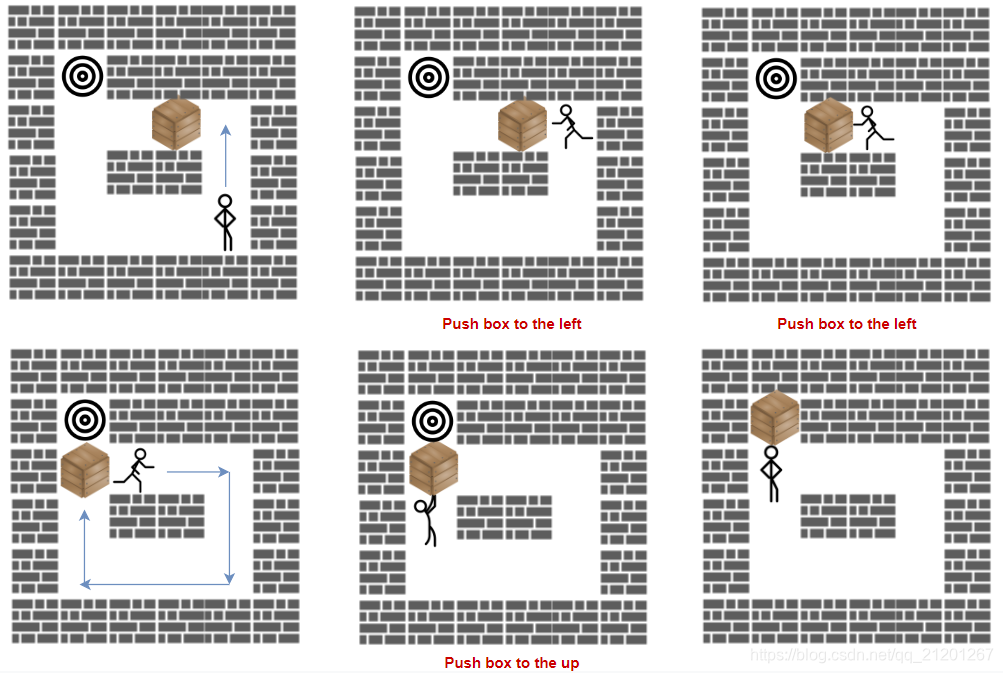 玩家需要站在箱子旁边,然后沿着箱子的方向进行移动,此时箱子会被移动到相邻的地板单元格。记作一次「推动」。
