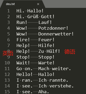 with open('deu.txt', 'r', encoding='utf-8') as f:lines = f.read().split('\n')