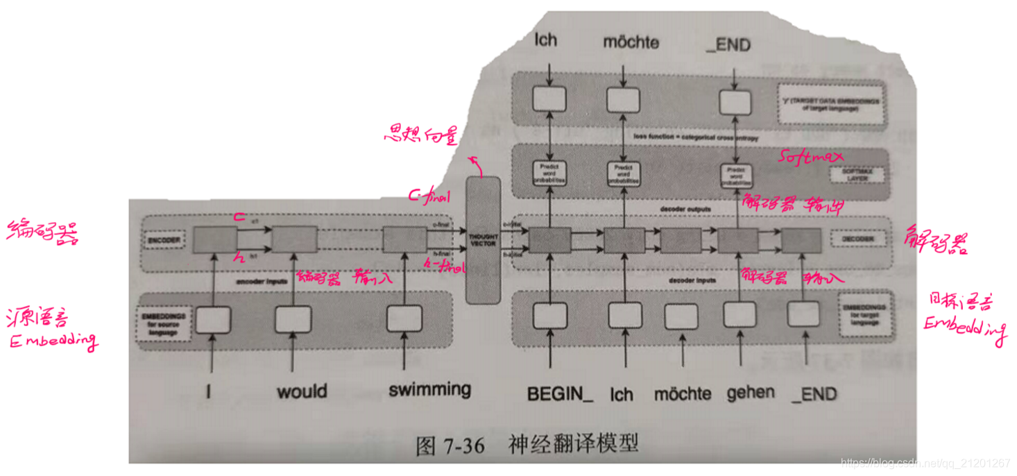 # 使用 encoder 输出的思想向量初始化 decoder 的 LSTM 的初始状态