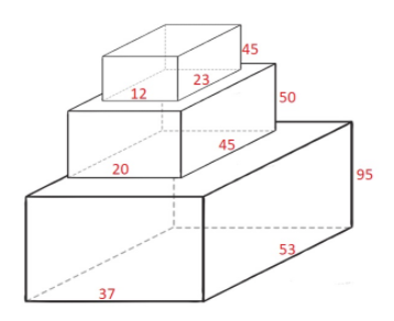 第 1 个长方体放在底部,53x37 的一面朝下,高度为 95 。