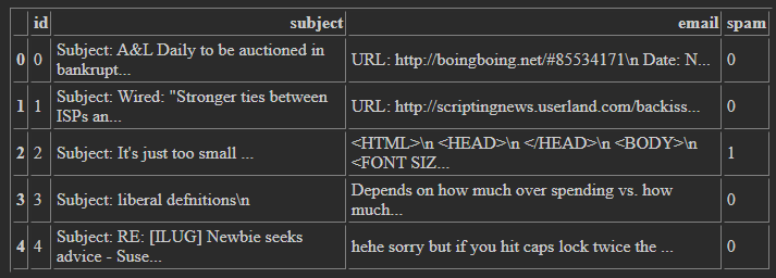 - y 标签 只有 0 不是垃圾邮件, 1 是垃圾邮件