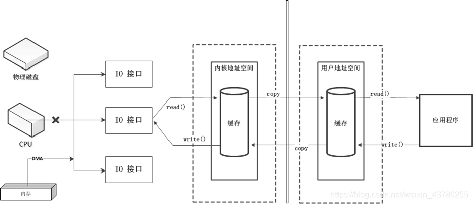以非直接缓冲区为例,应用程序获取数据需要经过用户空间,然后内核空间,再读取数据,所有的读取操作在NIO是直接由CPU负责的。这个流程会存在一些问题,当我们有大量的文件读取操作的时候cpu他的利用就很低,因为IO操作直接抢占CPU的资源,就不能够去做其他的事情,所以他的效率就会变低。