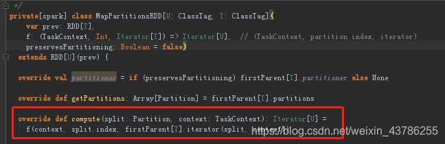 看个具体的RDD的compute实现,任何的RDD的compute返回的都是Iterator
