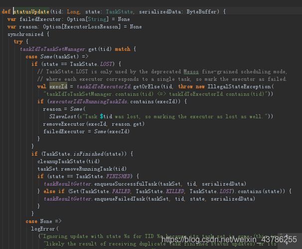 (2)进入到executor的launchTask方法中,在这内部有个TaskRunner