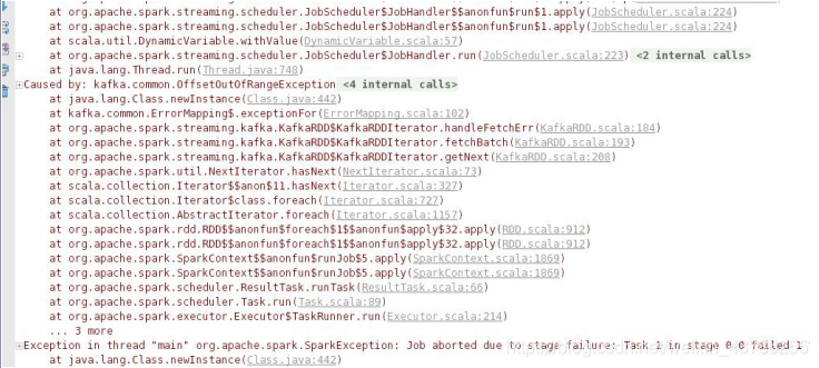 object CheckpointWithKafkaDirectOps {def main(args: Array[String]): Unit = {Logger.getLogger("org.apache.hadoop").setLevel(Level.WARN)Logger.getLogger("org.apache.spark").setLevel(Level.WARN)Logger.getLogger("org.spark_project").setLevel(Level.WARN)val conf = new SparkConf().setAppName("CheckpointWithKafkaDirectOps").setMaster("local")val duration = Seconds(2)val checkpoint = "file:///E:/data/chk"def createFunc():StreamingContext = {val ssc = new StreamingContext(conf, duration)ssc.checkpoint(checkpoint)val kafkaParams = Map[String, String]("bootstrap.servers" -> "bigdata01:9092,bigdata02:9092,bigdata03:9092","group.id" -> "Checkpoint","auto.offset.reset" -> "smallest")val topics = "spark".split(",").toSetval messages: InputDStream[(String, String)] = KafkaUtils.createDirectStream[String, String, StringDecoder, StringDecoder](ssc, kafkaParams, topics)messages.foreachRDD((rdd, bTime) => {if(!rdd.isEmpty()) {println("num: " + rdd.getNumPartitions)val offsetRDD = rdd.asInstanceOf[HasOffsetRanges]val offsetRanges = offsetRDD.offsetRangesfor(offsetRange <- offsetRanges) {val topic = offsetRange.topicval partition = offsetRange.partitionval fromOffset = offsetRange.fromOffsetval untilOffset = offsetRange.untilOffsetprintln(s"topic:${topic}\tpartition:${partition}\tstart:${fromOffset}\tend:${untilOffset}")}rdd.count()}})ssc}//创建或者恢复出来一个StreamingContextval ssc = StreamingContext.getOrCreate(checkpoint, createFunc)ssc.start()ssc.awaitTermination()}