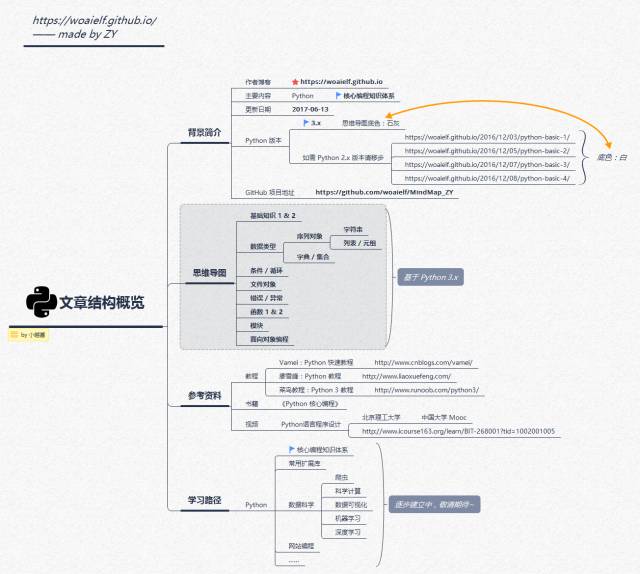 如需基于 Python 2.x 版本的笔记,可移步博客:https://woaielf.github.io (详见「总览」思维导图)。