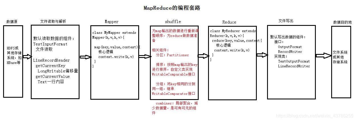 Combiner:局部聚合组件,是优化组件 ,接受数据来自maptask,输出数据给reducetask,默认不是shuffle的组件。